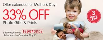 Walgreens is extending it’s 33% OFF Photo Gifts & Prints through Saturday May 1st in honor of Mother’s Day. Just enter coupon code “1000WORDS” at checkout.