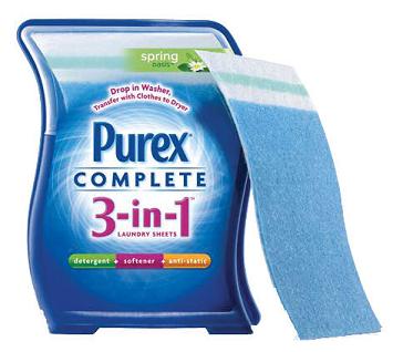 -$3 Purex Complete 3-in-1 Laundry Sheets (excludes 2 load “to-go” pack) – 10-10-10 RP