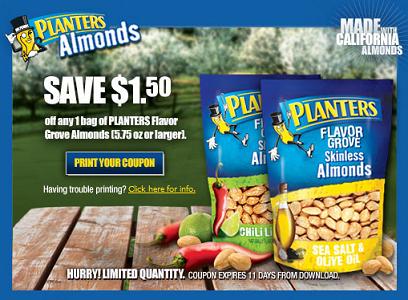 -$1.50/1 Planters Flavor Grove Almonds 5.75+ HERE