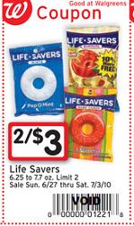 2/$3 Life Savers 6.25 to 7.7ooz (1221)